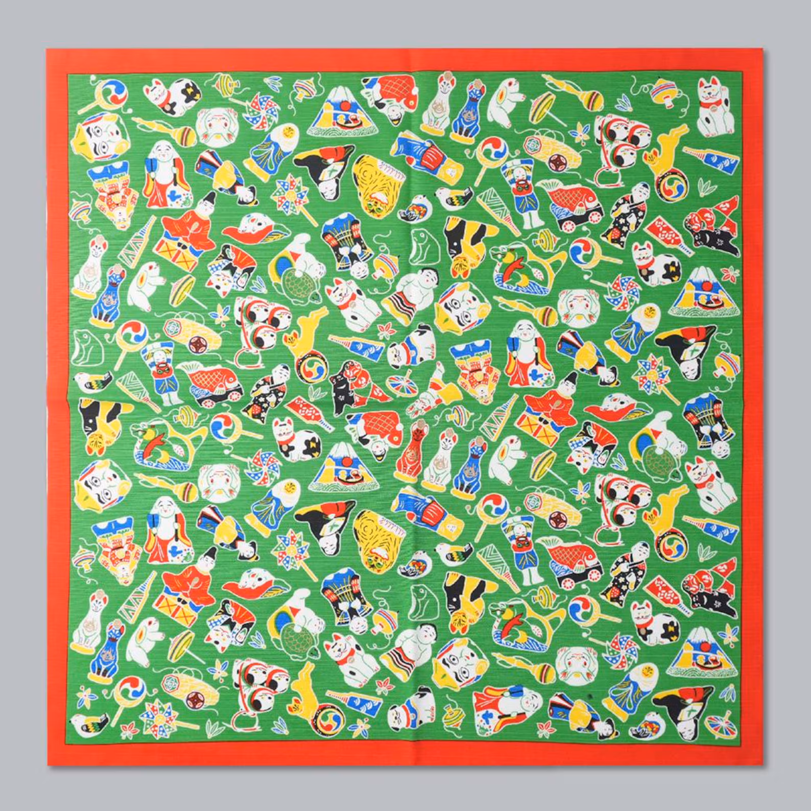 這款風呂敷採用源自日本桃山時代末期的伏見人形,時至今日,這種人形僅在京都伏見由一家工房持續製作,是極具歷史意義的傳統工藝品